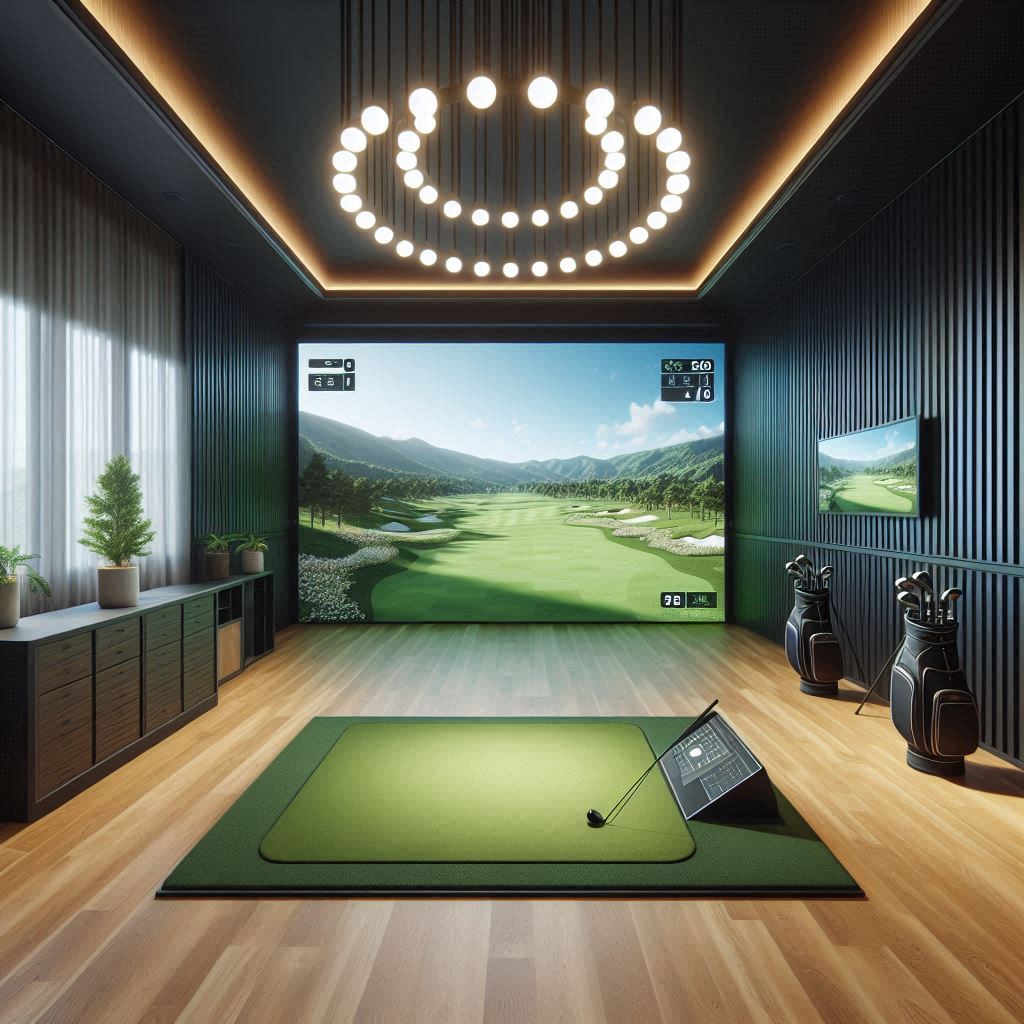 입구에서 바로 카운터가 보이고, 좌우로 룸이 배열된 전형적 구조였습니다. 대기석은 모듈형 테이블과 의자로 간단히 구성되어 있어 순번 확인이 편했습니다. 조도는 과하게 밝지 않고 스크린 시인성을 우선한 수준이었습니다. 예약은 앱 또는 전화로 가능하며, 현장 빈타임도 곧바로 접수해 주는 방식이었습니다. 최초 방문이면 회원 등록 후 결제까지 5분 내외로 끝났습니다. 타석마다 티업박스, 볼 자동 공급, 기본 퍼터와 우드 세트가 구비되어 있어 체험 목적에는 무리 없습니다. 스코어 설정과 코스 선택은 직원이 초기 화면에서 간단히 도와주어 초보 동반 시에도 진행이 매끄럽습니다. 방음은 평균 이상이라 옆 홀 소음이 크지 않았습니다. 시즌 이벤트 안내가 카운터 측면에 정리되어 있어 할인 시간대를 미리 파악하기 좋았습니다.